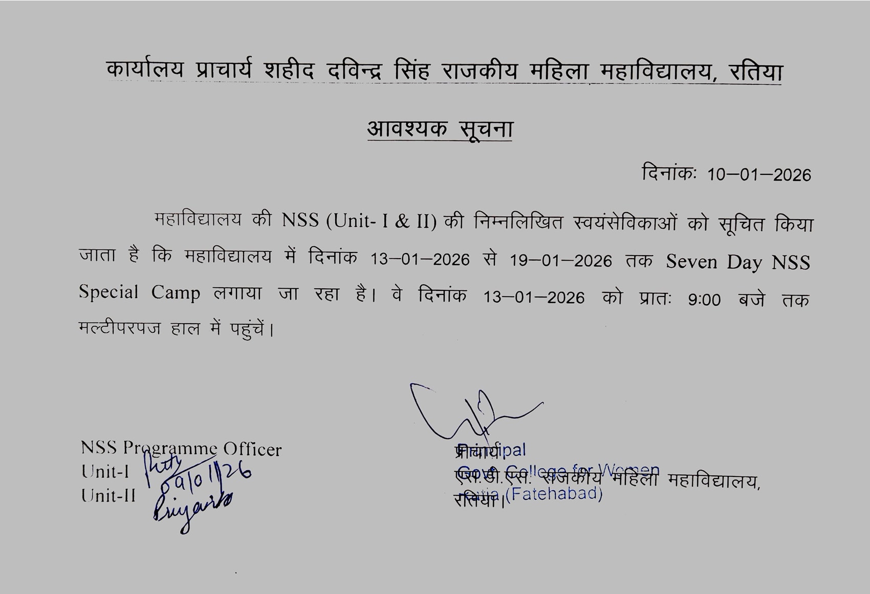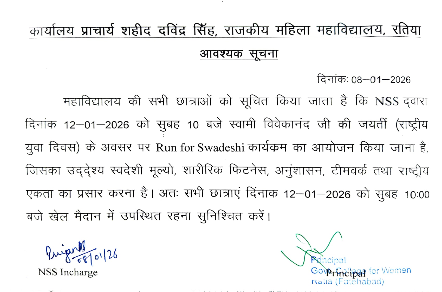 National Service Scheme of the college